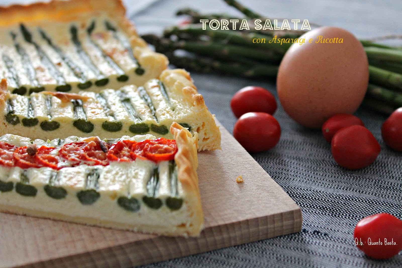 Non sapete che cucinare questa sera? Vorreste preparare qualcosa di leggero, ma saporito? Ecco una torta salata davvero delicata, in cui gli asparagi sono protagonisti insieme a ricotta e pomodorini. Una ricetta perfetta sia come aperitivo, sia come piatto unico e – perché no? – per essere portata in ufficio il giorno dopo.