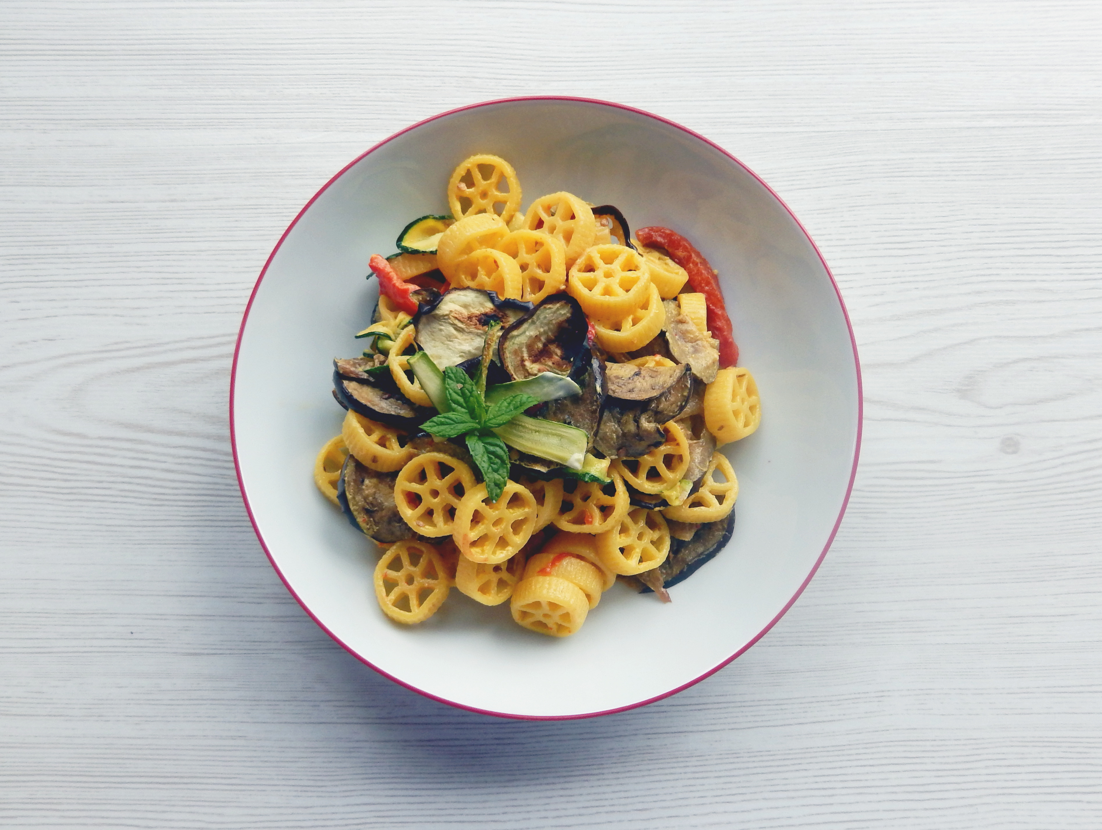 Tagliate a rondelle sottili le melanzane e le zucchine nel senso della lunghezza e grigliatele sulla piastra oppure in forno (in modalità grill). A parte grigliate in forno (modalità grill) anche il peperone lasciandolo intero in una terrina per una mezzoretta, successivamente toglietegli la pelle e i semi e tagliatelo a striscioline.