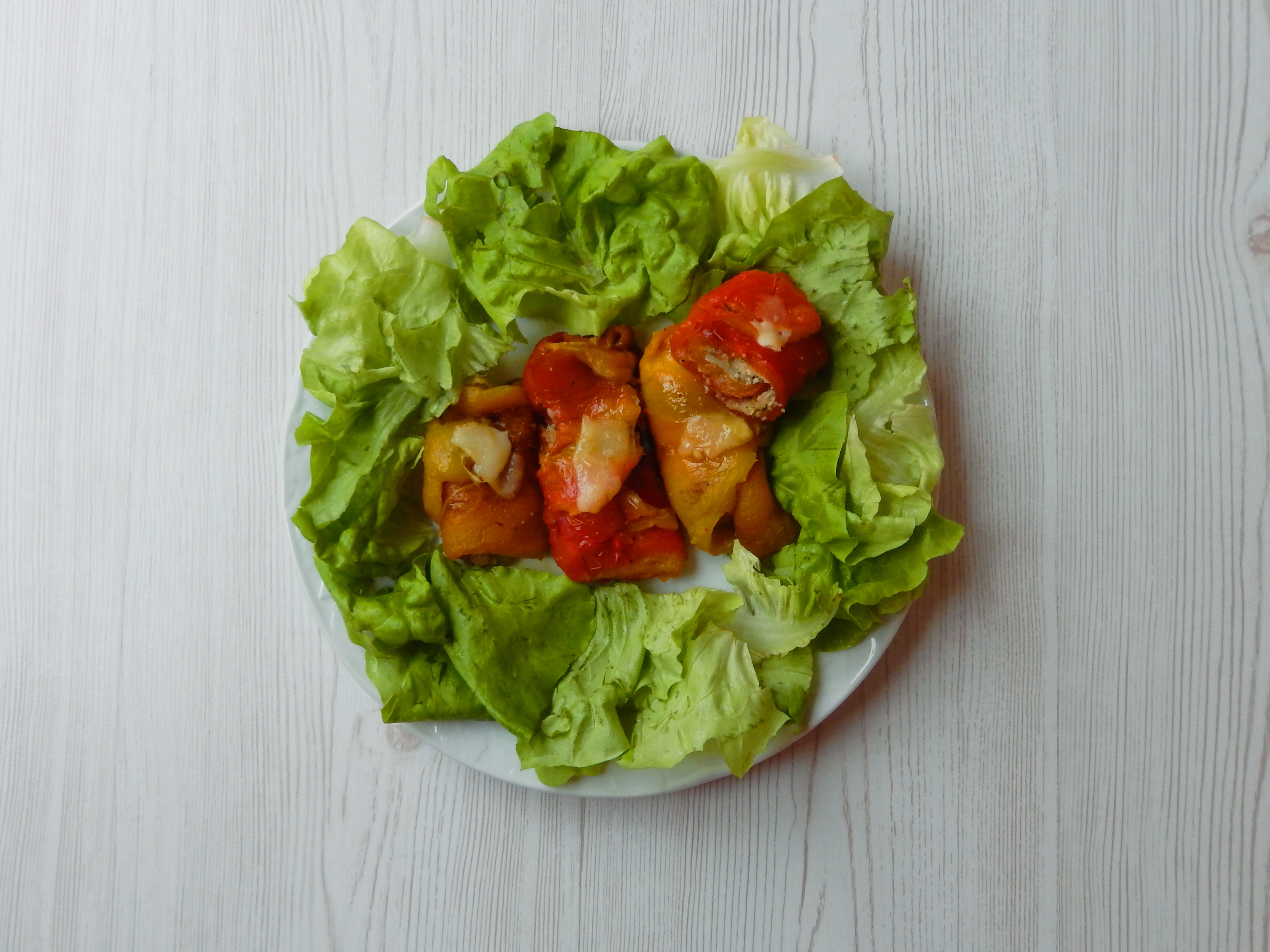 Una volta che i peperoni saranno raffreddati e pelati, apriteli e divideteli in striscioline abbastanza larghe sulle quali distribuirete il ripieno e il formaggio. Richiudeteli avvolgendoli su loro stessi e se necessario chiudeteli con uno stecchino. Posizionateli in una teglia precedentemente cosparsa di olio e infornateli a forno già caldo a 200° per 10 minuti.