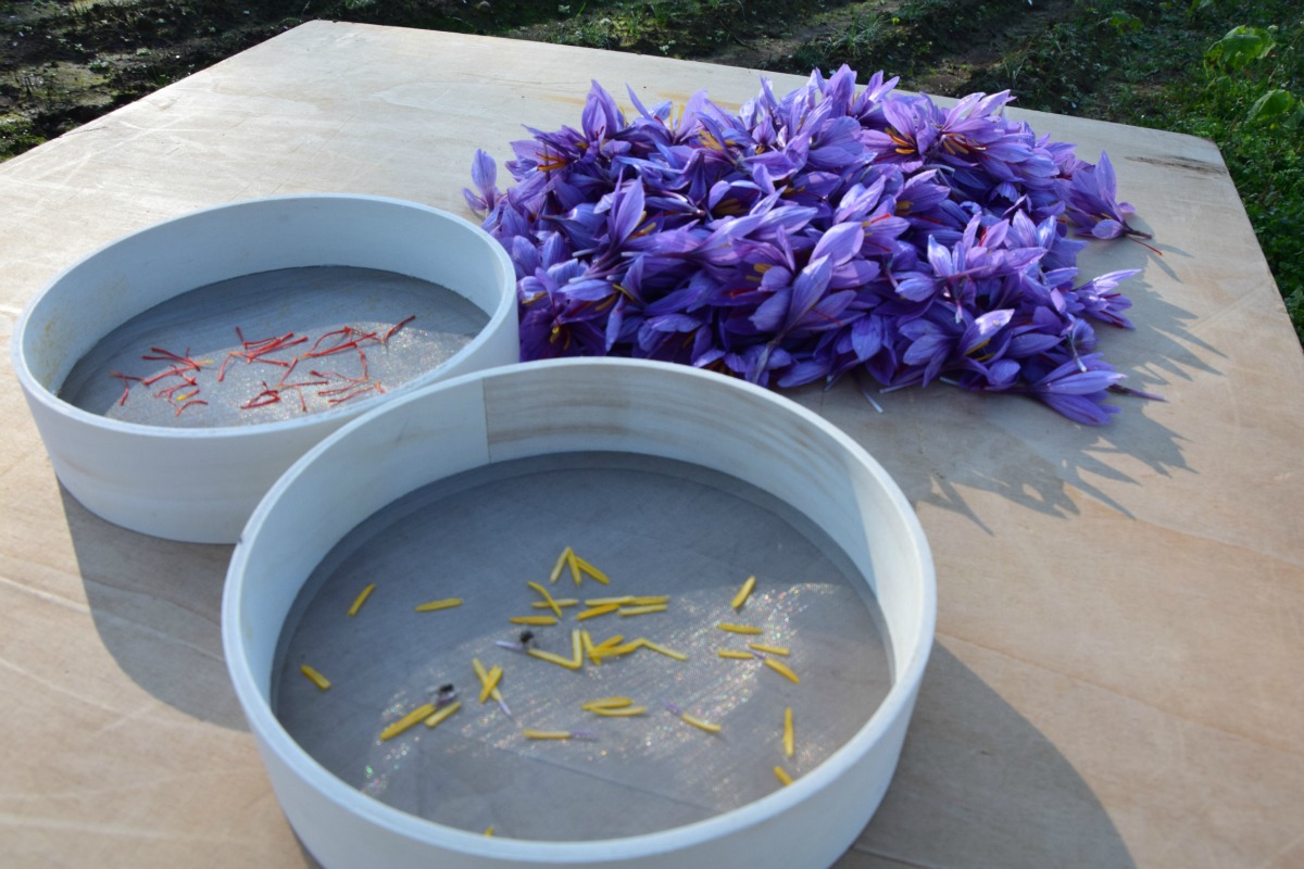 Dopo la raccolta si passa alla fase della “mondatura” in cui il fiore viene separato dalla spezia vera e propria. La spezia sono i filamenti rossi detti stigmi che danno il colore e l’aroma dello zafferano. Da 150 fiori si ricava un solo grammo di spezia secca (che è la dose per una trentina di persone). La parte gialla è invece il polline, ottimo ricostituente che può essere utilizzato per aromatizzare il miele.