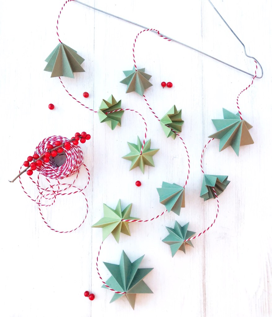 Completa la decorazione della tua casa con semplici festoni realizzati con carta riciclata, ritagli di carta colorata o di giornale, frutta essiccata o rami di pino!