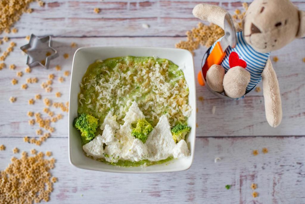 Crema di broccoli e ricotta con stelline