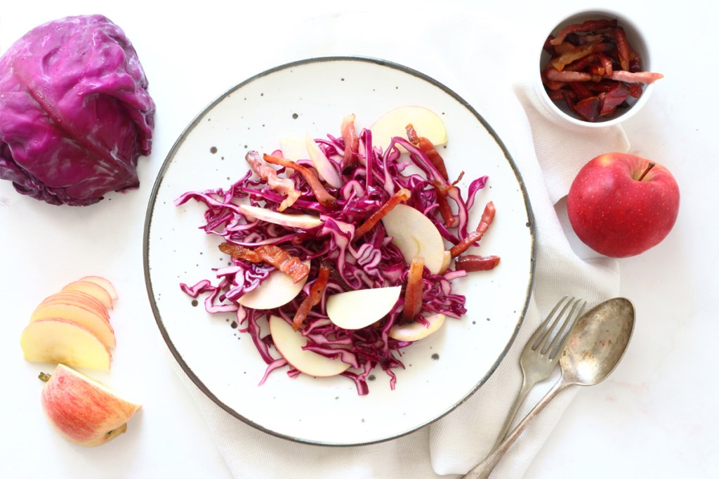 Insalata di cavolo cappuccio rosso, speck e mele