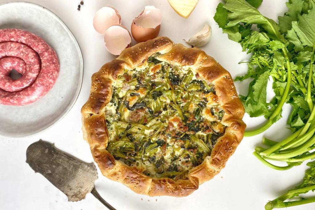 Torta salata con salsiccia e cime di rapa