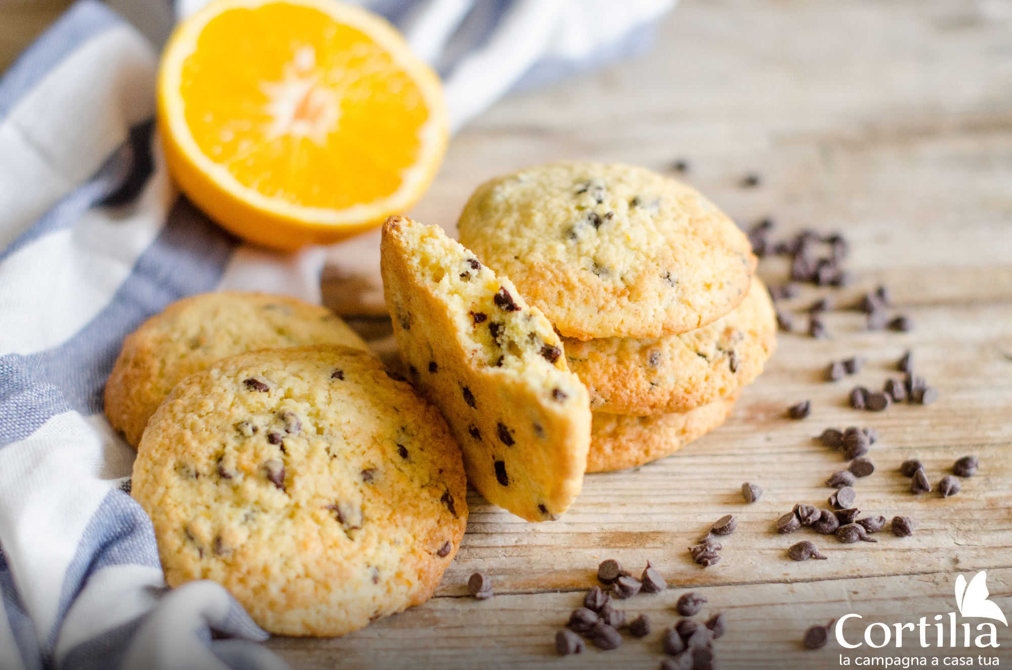 Questi cookies, che strizzano l’occhio a quelli americani, saranno perfetti per una merenda sana, accompagnati da un buon succo di frutta. Il sapore delle gocce di cioccolato esalta la nota nocciolata della farina di farro, e si sposa alla perfezione con il profumo di stagione dell’arancia.