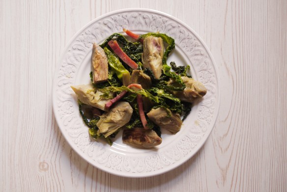 PADELLATA DI CARCIOFI, CAVOLO VERZA E PROSCIUTTO CRUDO