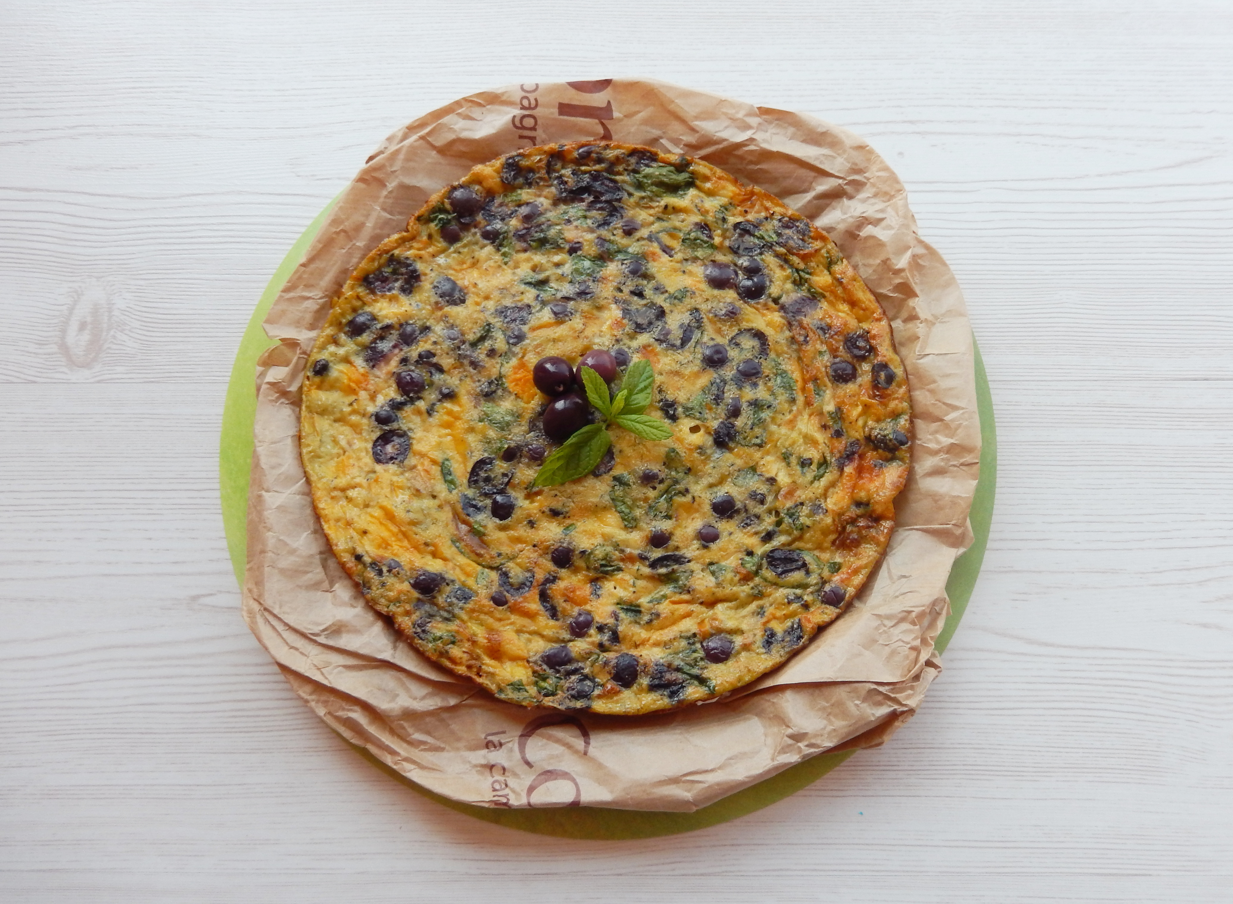 Come prima cosa fate cuocere il peperone in forno o in padella. Successivamente in un altro recipiente sbattete le uova condendole con sale, pepe e una spolverata di formaggio grattugiato. In seguito, aggiungete il peperone raffreddato tagliato a pezzetti, le olive nere denocciolate, le foglie di basilico tritare e il formaggio tagliato a cubetti.