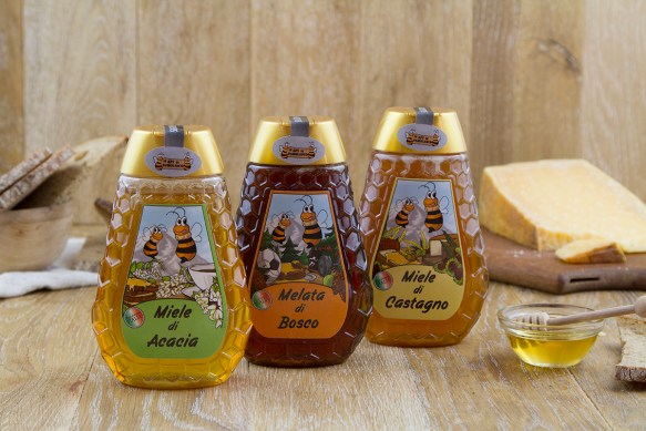 Una selezione di ottimi mieli contenuti in praticissimi squeezer salva goccia, ideali per dosare il prodotto direttamente sulle fette biscottate, tisane o per accompagnare gli antipasti.