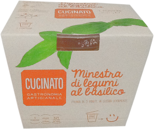 Ingredienti: legumi in proporzione variabile 28% (fagioli dell’occhio, fagioli cannellini, ceci, lenticchie), farro 2%, cipolla, carote, sedano, rosmarino, salvia, prezzemolo, basilico, concentrato di pomodoro, vino bianco, olio extravergine d’oliva, sale.