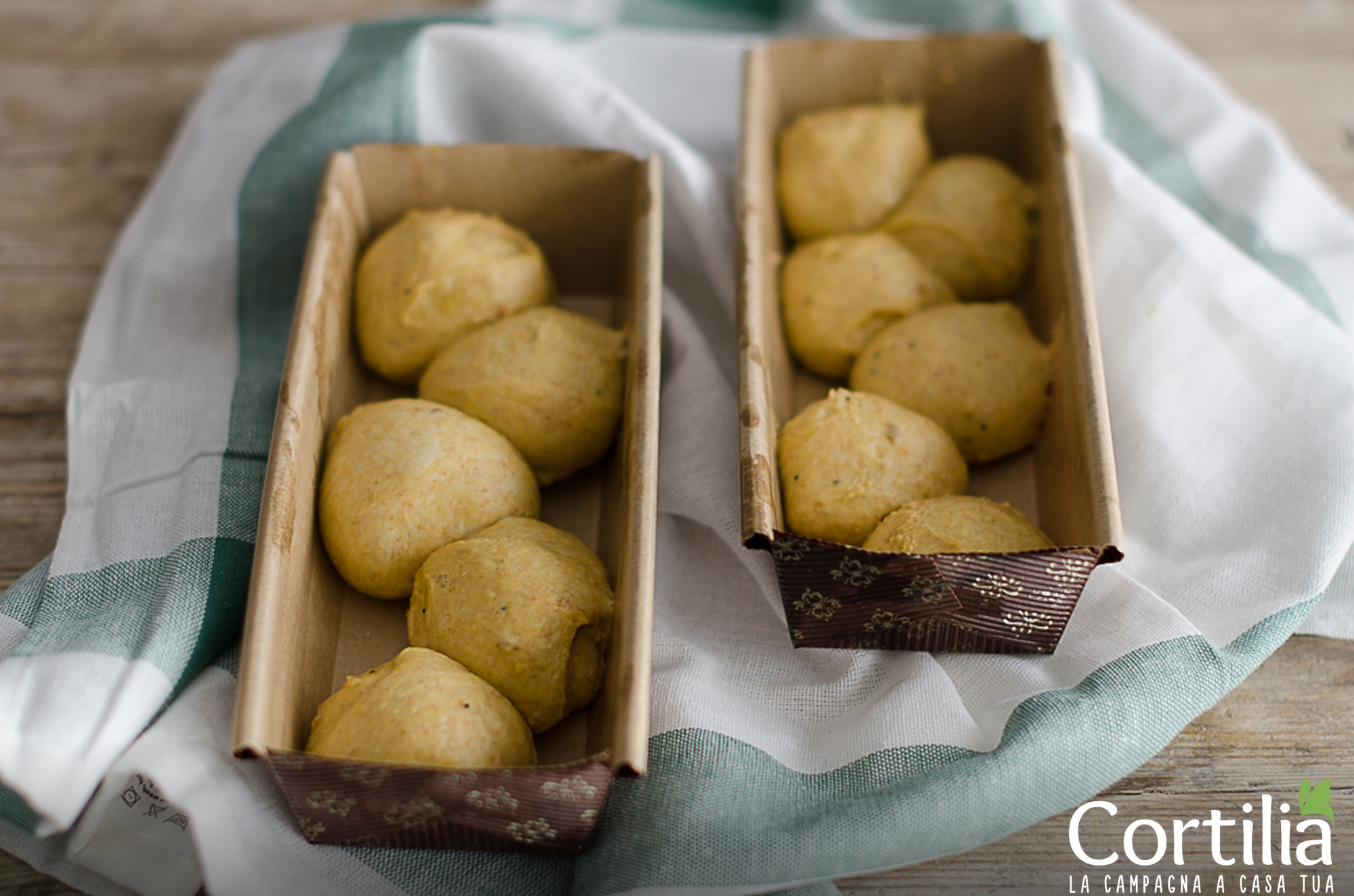 Ponete a lievitare per un’oretta, poi piegate a libro l’impasto e mettete in frigorifero per una notte. Il giorno successivo togliete dal frigo, lasciate acclimatare, formate delle palline da 60 g di peso, e ponetelo in uno stampo da plum cake. Lasciate lievitare, poi cuocete in forno caldo a 175°C per circa 35 minuti.