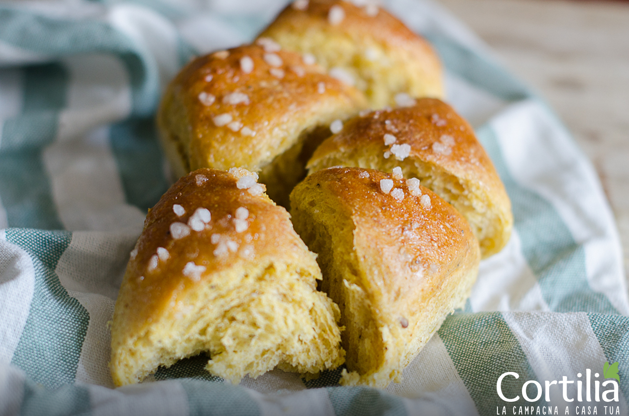 La giornata a volte è difficile da cominciare, ma con questo pane dolcissimo e giallo come il sole, che racchiude la dolcezza della zucca e il benessere dei suoi semi, il sorriso vi spunterà prima di uscire di casa.