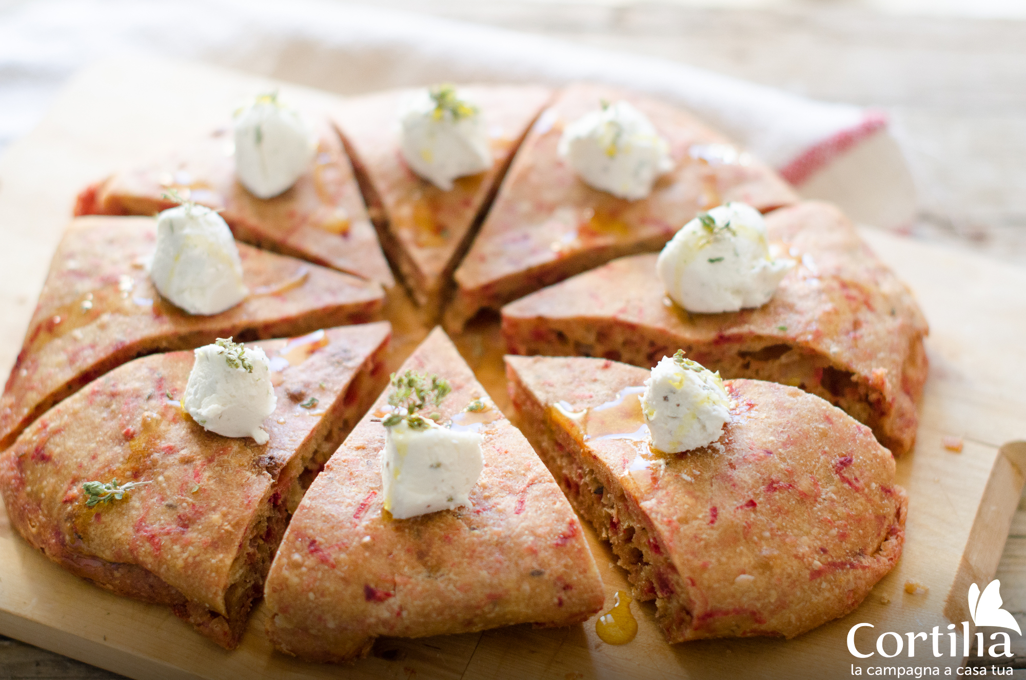 Cercate invece il bellissimo fucsia della barbabietola, ma inseritelo in una focaccia che diventerà gustosa e colorata. La rapa darà in un colore e un aroma speciale, che abbiamo deciso di abbinare con una mousse di caprino…