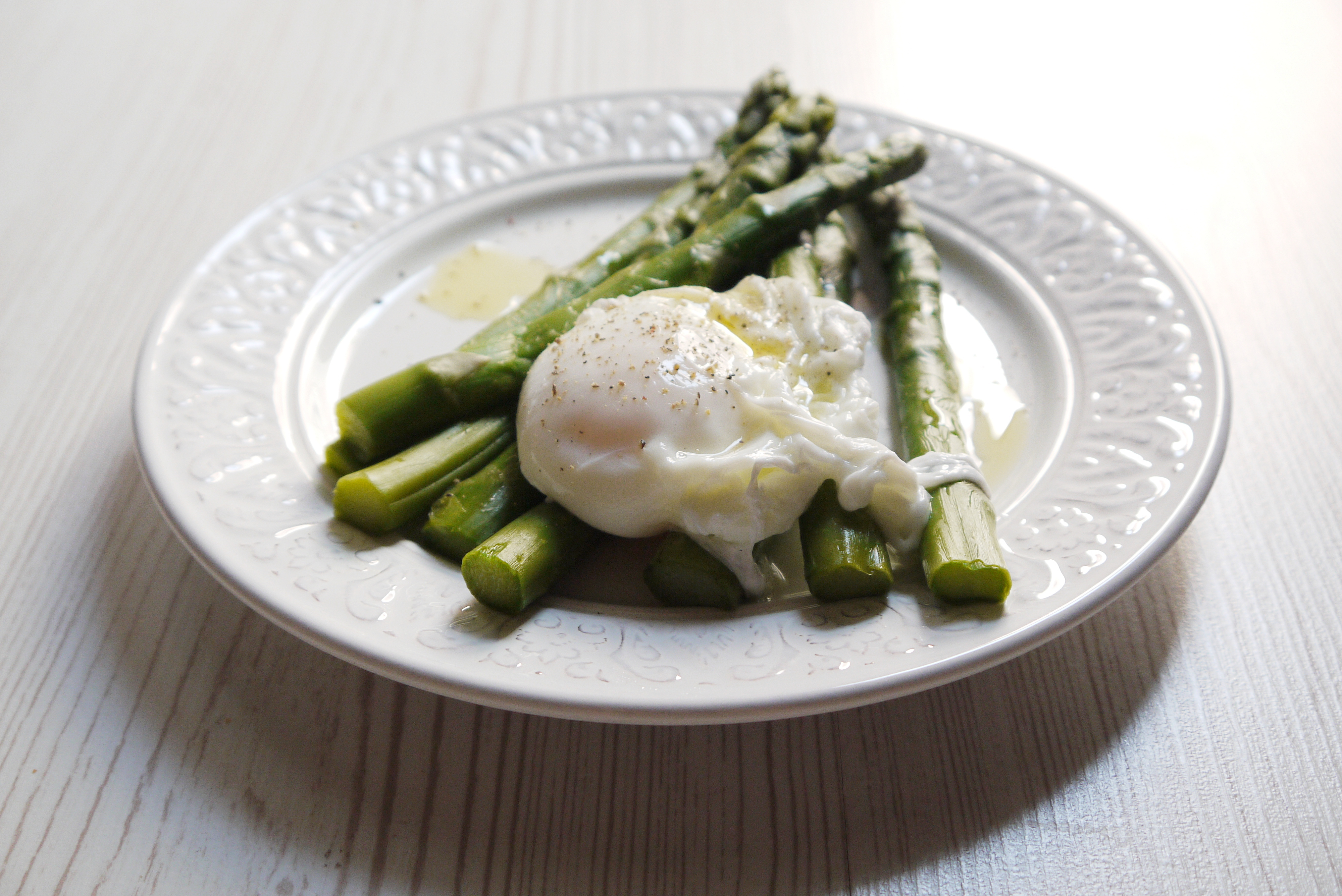 Uova in camicia su letto di asparagi