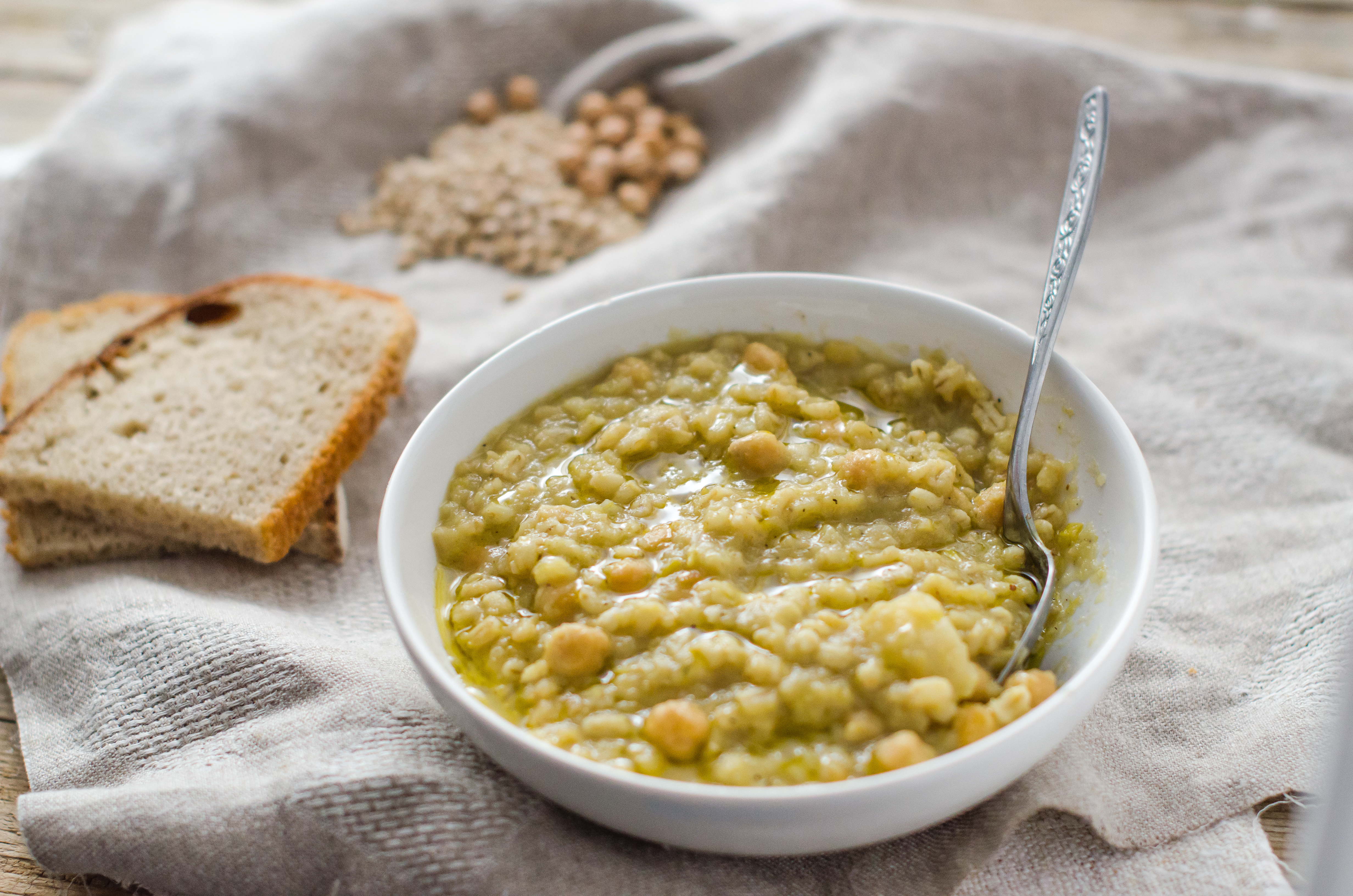 Zuppa di ceci, porro e sedano rapa con orzo